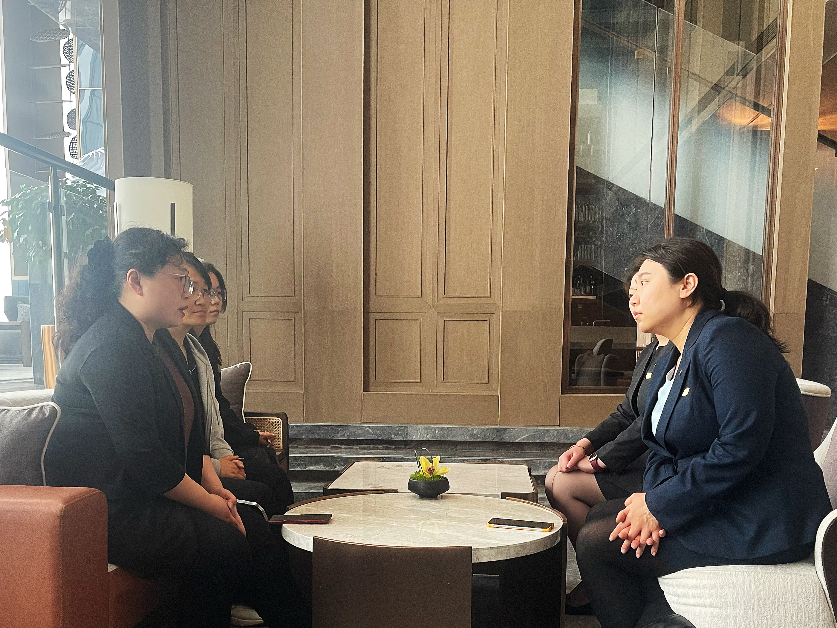 公司负责人李木子对李兆楠一行的到来表示欢迎,带领参观企业环境,详细介绍郑州丹尼斯广场洲际酒店的发展规模、服务产品、服务理念以及校企合作项目等。