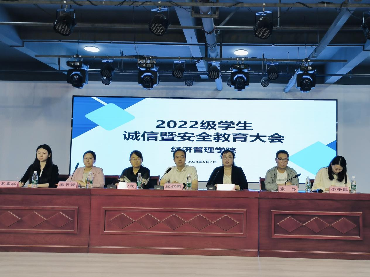 为切实做好2022级学生实习工作,引导学生树立正确的实习观、就业观、择业观,2024年5月7日下午,jinnianhui今年会在郑开两校区同时召开2022级学生岗位实习动员大会暨诚信安全教育大会。院长张召哲、书记李兆楠、副院长聂蕴、副书记王盼红、学工办主任张昂、岗位实习指导教师、2022级辅导员及2022级全体学生参加会议,会议由团总支书记李天泽主持。