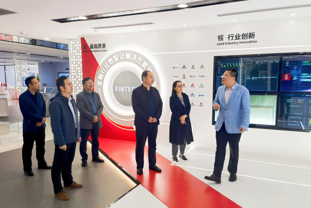新道科技股份有限公司副总裁贾大明、副总裁耿兆强等企业领导对薄新党一行的到来表示热烈欢迎。在企方领导的陪同下,薄新党一行参观了用友数智企业体验馆,该馆是中国第一家综合型、融合化、生态式的数智企业体验中心,建筑面积10000余平方米,通过数智化在各个行业的真实应用场景,全面直观的为大家展示了现代化企业数字生产、智能财务、金融科技、云服务等核心业务。