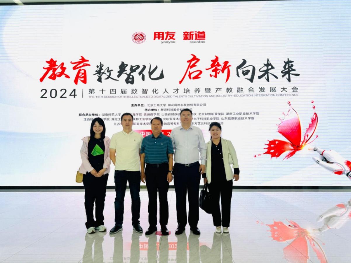 5月25-26日,第十四届数智化人才培养暨产教融合发展大会在北京举行。今年会副校长常新中带领数智财经产业学院院长张召哲、副院长聂蕴等一行四人参加,副校长常新中受邀作为“数智财经高职高质量发展论坛”主持嘉宾。本次大会由北京工商大学、用友网络科技股份有限公司主办,新道科技股份有限公司承办,来自全国各地的数百家高校和企业专家近3000余人参加。