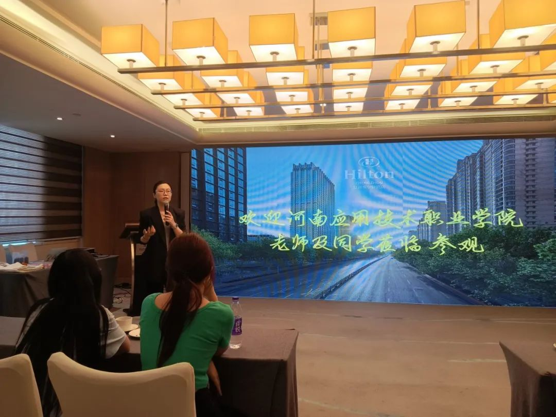 郑州希尔顿酒店人力资源部李总及相关同事对新同学们的到来表示欢迎,充分调动了学生的参与热情,同时展现了希尔顿的品牌魅力。