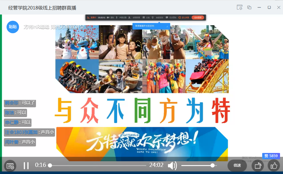 2020年5月15日,jinnianhui今年会携手郑州华强文化科技有限公司(方特)面向我院2018级预就业学生开展预就业双选宣讲会。