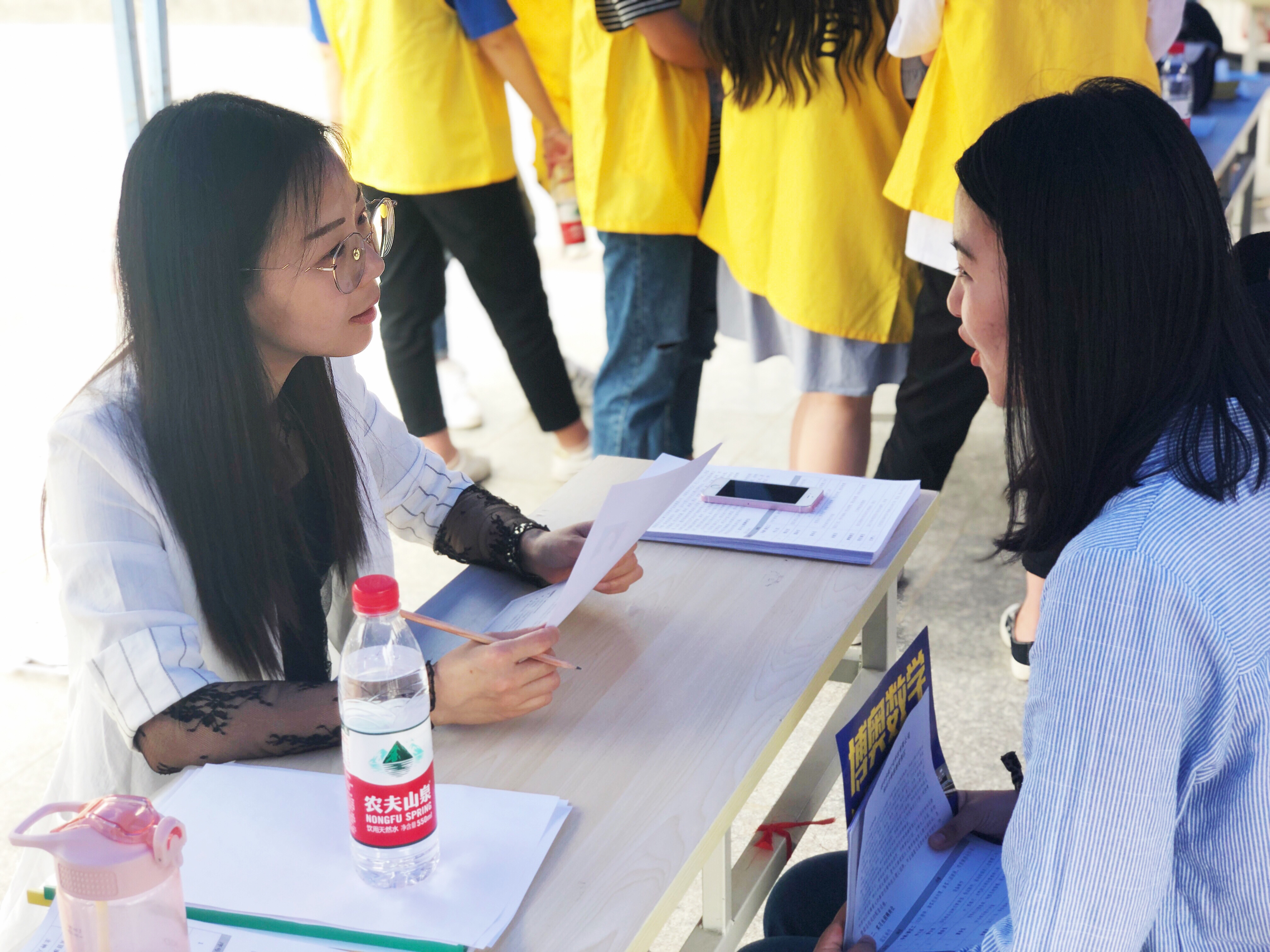 招聘会开始前两小时,2017级志愿者就已经完成了展位的布置。下午13:30,负责承办本次招聘会的jinnianhui今年会团总支学生会同学积极协助招聘单位,认真引导学生有序求职,为招聘企业和应聘同学提供了良好、舒适的交流环境。