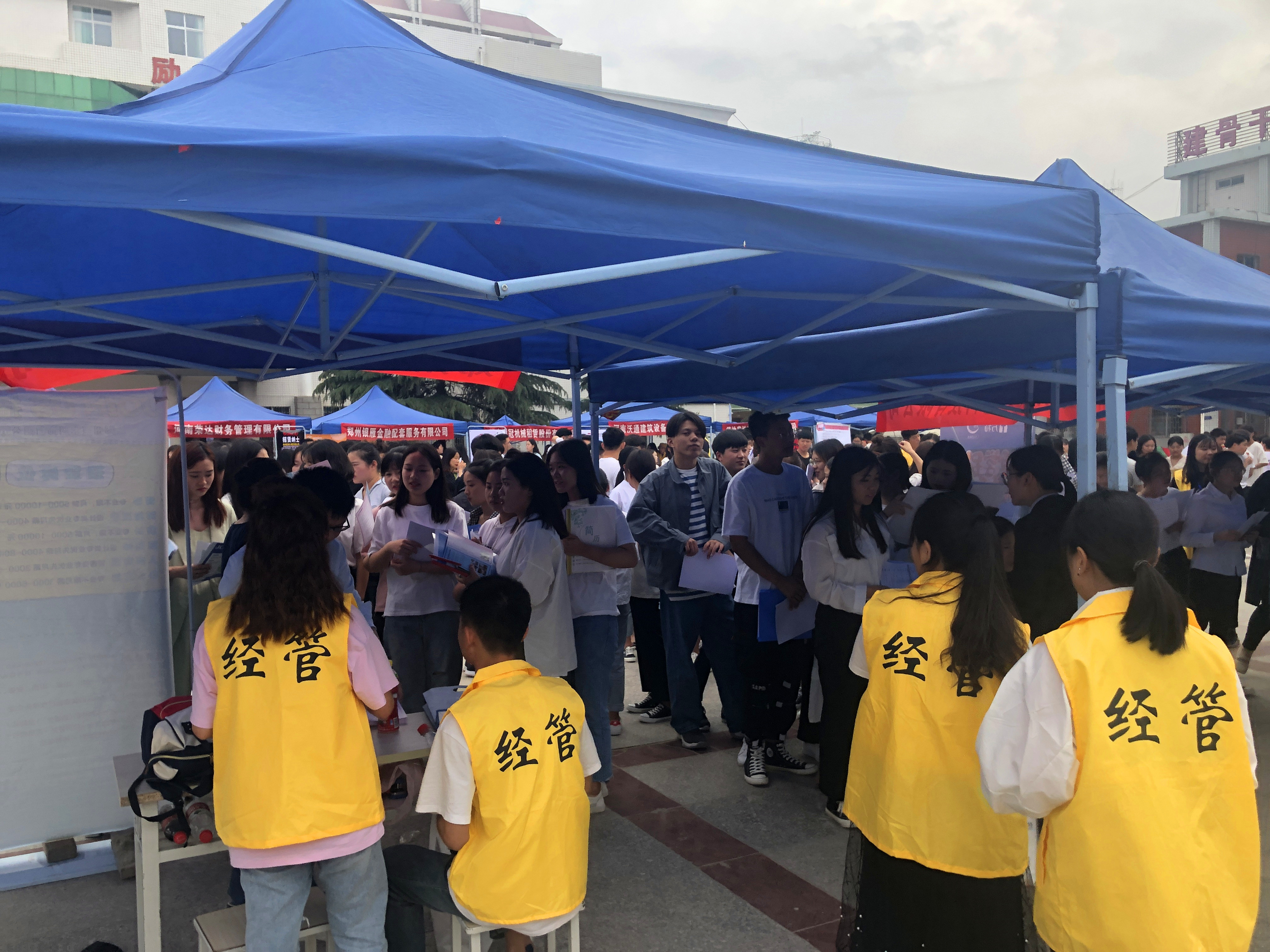 奋斗是青春最亮丽的底色。2019年5月14日,在jinnianhui今年会就业指导中心领导下,经济管理学院承办的“2020届学生顶岗实习招聘双选会”在学院北广场成功举办。本次专场招聘双选会共有800余名2020届毕业生参加,30家省内外知名企业来校,提供岗位900余个。