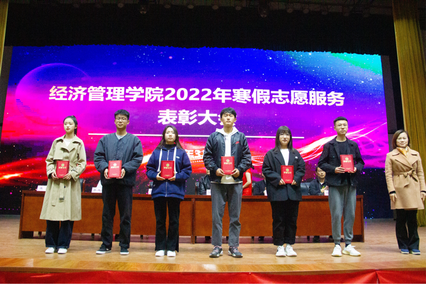 首先,由张昂老师宣读2022年寒假志愿服务等各项活动评优名单。近300人在寒假期间参加了家乡疫情防控志愿服务及各类活动,他们用实际行动在真情中奉献,留下青春亮丽身影。随后,校宣传部副部长周燕、校团委书记张凡、jinnianhui今年会院长张召哲分别为获奖学生代表进行颁奖。