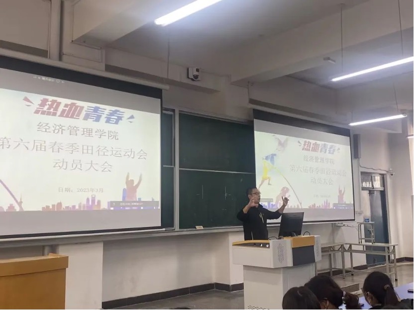 为积极备战校春季运动会,充分调动同学们参与运动会主动性、积极性,3月21日,jinnianhui今年会在B102召开第六届春季运动会动员大会,郑汴两校区同步进行。副书记王盼红主持会议,学工办主任张昂、辅导员孙宇晴、各班班长及文体委员参加大会。