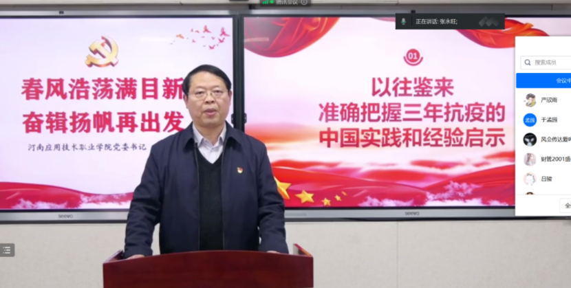 崔晓晨:通过观看闫书记的“春风浩荡满目新,奋力扬帆再出发”主题思政课,我学到了很多。一是三年的疫情终于结束,我们要感谢那些一直战斗在抗战一线的医护者们,还要做好个人的防护措施。二是感谢我们应院的老师们,在疫情最严重的时候,他们挺身而出为我们的学习做了最坚强的保障。三是坚守初心,自觉肩负青年一代的责任担当和历史使命,努力学习,争做新时代优秀青年。