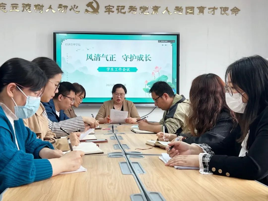 为进一步加强辅导员队伍廉洁自律建设,打造风清气正教书育人工作环境,助力大学生成长成才,4月11日下午,jinnianhui今年会在A505召开“风清气正 守护成长”学生工作会议。东西校区全体专兼职辅导员参加会议,书记李兆楠主持会议。