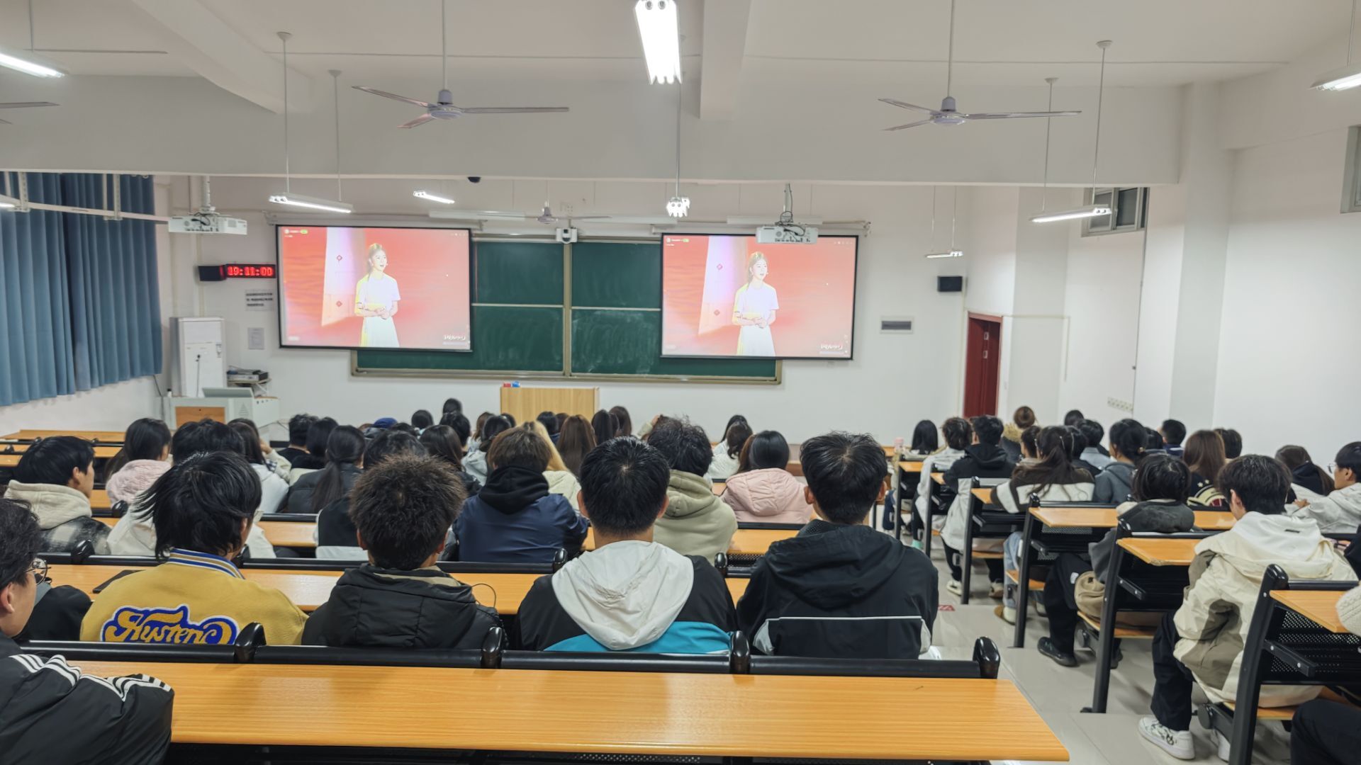 观看结束后,酒管2402班心理委员苏昌昌同学为现场同学带来了生动分享。作为入选“2025年河南省高校心理情景剧”特色作品《第二十九张牌》的参演者,他讲述了从剧本构思到舞台表演的心路历程,以鲜活的创作经验激发了同学们关注心理健康、勇于艺术表达的热情。