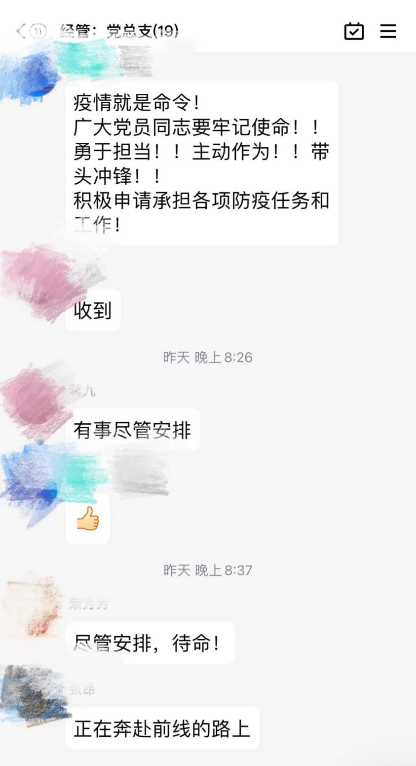 “疫情就是命令!广大党员同志要牢记使命!积极承担各项防疫任务和工作!”jinnianhui今年会教工党支部书记、院长张召哲发出集结号令。“收到,有事尽管安排!”“尽管安排,待命!”“正在奔赴前线的路上!”......5月3日晚上10点,15名党员教师接到消息,没有任何犹豫,立刻收拾行李,甚至来不及和家人解释,火速赶往学校,在办公室简单安顿,做好了“以校为家”的准备。