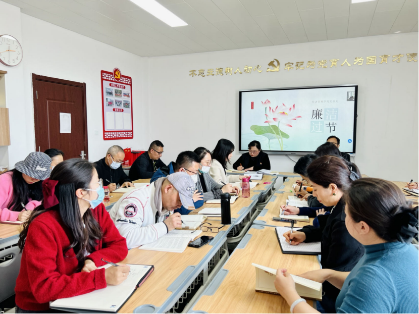 五一节前夕,为营造风清气正、廉洁文明过节氛围,进一步增强全体党员教师廉洁自律意识,4月27日,jinnianhui今年会党总支在A505开展“清廉过节”主题党日活动,进行15起典型案例警示教育,全体党员教师参加学习,书记李兆楠主持学习会。