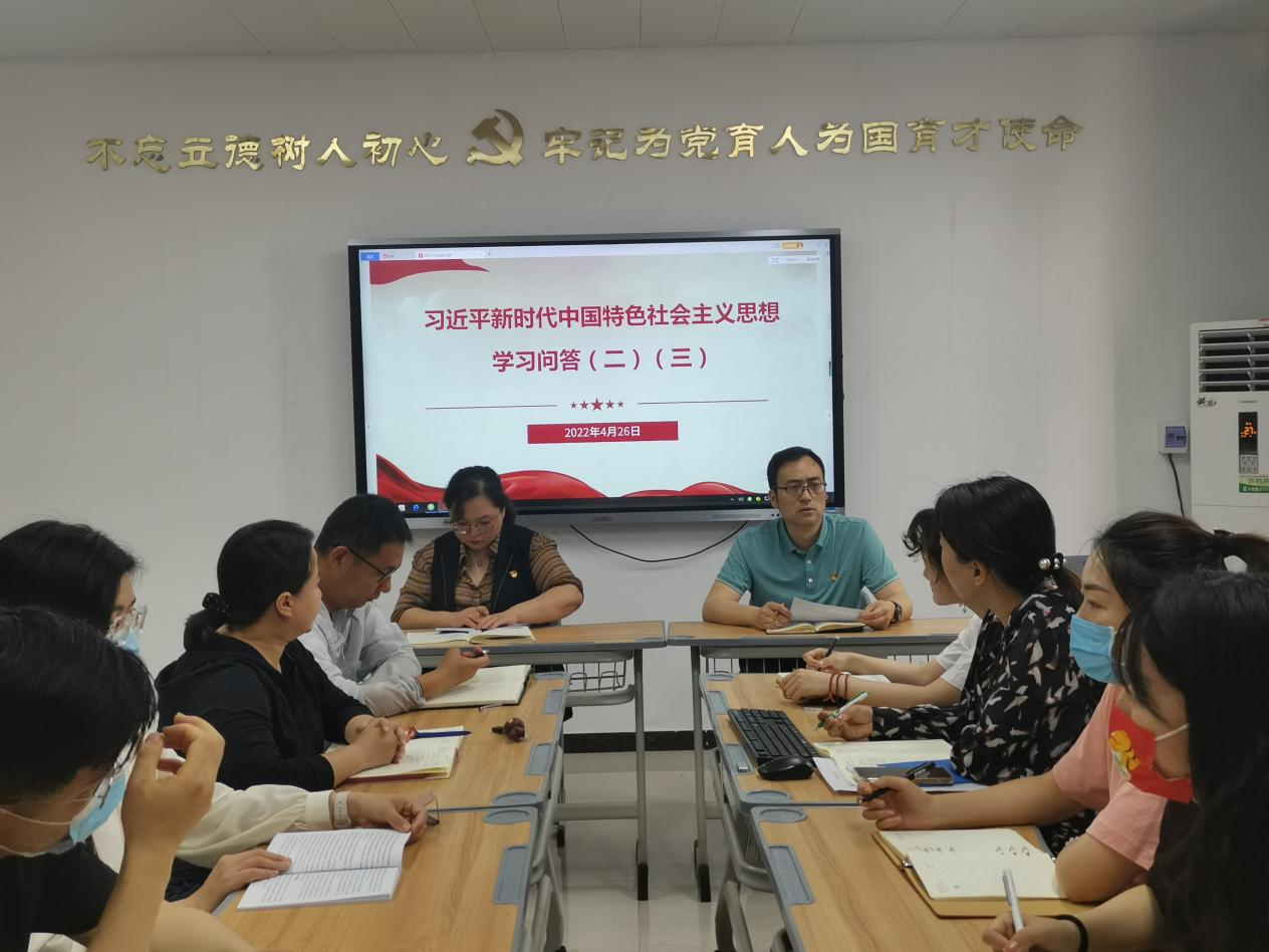 2022年4月26日下午,jinnianhui今年会党总支在办公楼505组织全体教职工开展政治理论学习,专题学习《习近平新时代中国特色社会主义思想学习问答》(二)(三)、《高校师生保密知识读本》,并观看了大型保密纪录片《胜利之盾》第一集。会议由党总支书记李兆楠主持。