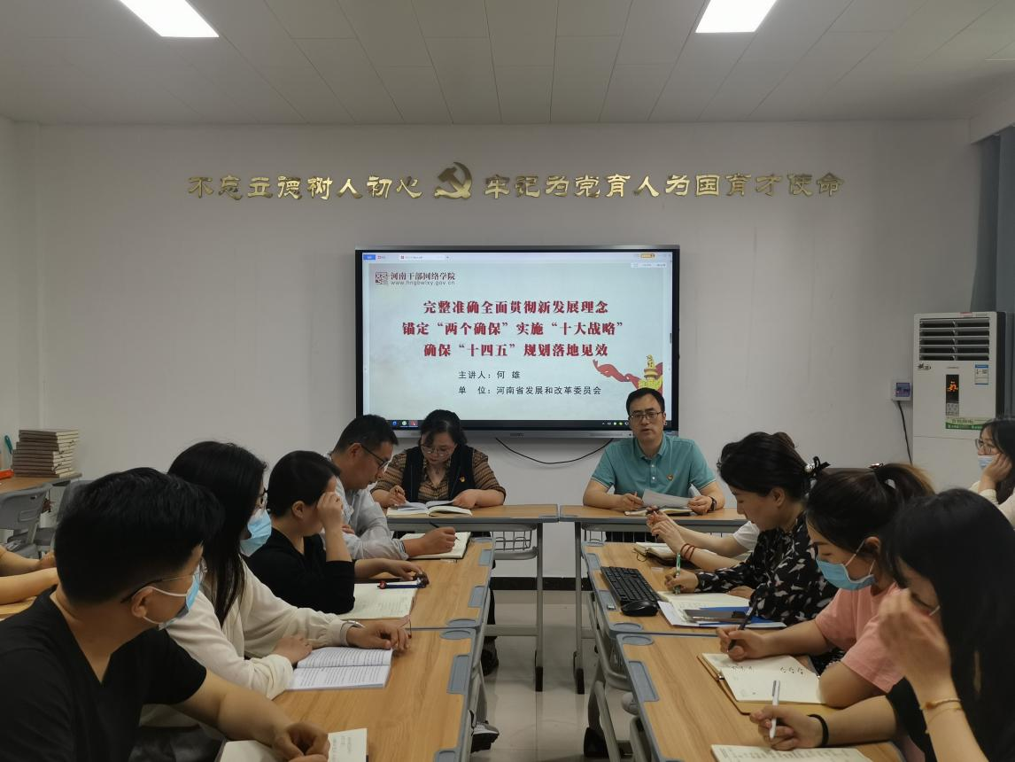 为进一步提升党员教师政治素养、政治站位,落实学校《关于组织党员进党校学习“十大战略”的通知》要求,2022年4月26日下午,jinnianhui今年会党总支在A505组织开展开展“十大战略”专题学习,集中观看河南干部网络学院直播课《完整准确全面贯彻新发展理念锚定“两个确保”实施“十大战略”确保“十四五”规划落地见效》,由郑州市委副书记何雄主讲。