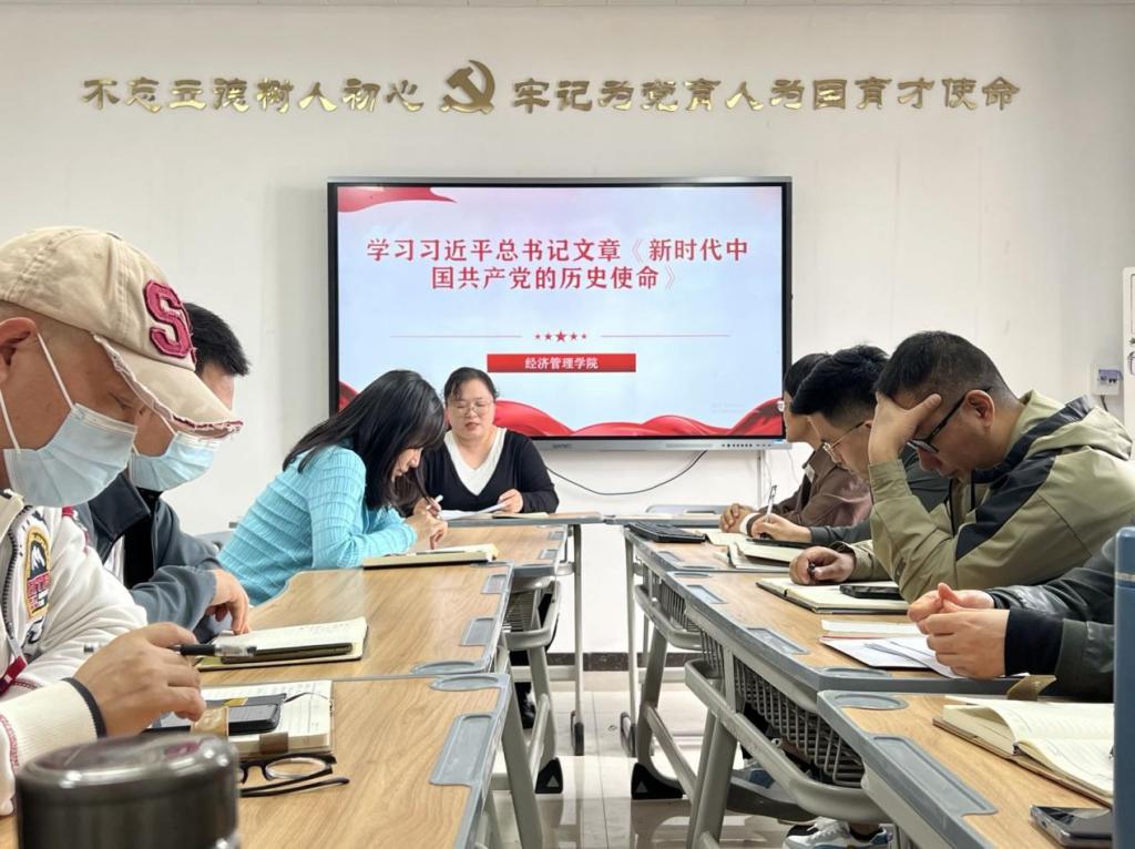 10月8日下午,jinnianhui今年会党总支在郑州校区A505、开封校区B306同步进行十月份第一次政治理论学习会,重点学习《新时代中国共产党的历史使命》,集中学习《习近平生态文明思想学习纲要》《习近平谈治国理政》(第四卷)《习近平关于坚持和完善党和国家监督体系论述摘编》等部分内容。全体党员教师参加会议,书记李兆楠主持会议。