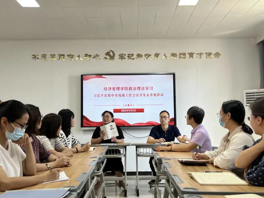 2022年9月6日下午,jinnianhui今年会党总支在A505组织开展2022-2023学年第一次政治理论学习会,重点学习习近平总书记在省部级专题研讨班上重要讲话精神、习近平在中央统战工作会议上重要讲话精神、《文明校园动态管理问责暂行办法》、《郑州市文明行为促进条例》及2022年文明校园创建问卷调查参考内容等。会议由总支书记李兆楠主持,全体党员及教职工参加会议。