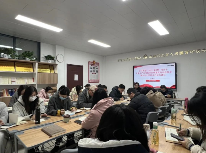 2月14日下午,jinnianhui今年会党总支在A505召开二月份第一次政治理论学习会暨主题党日活动,学习《求是》2023年第3期习近平总书记重要文章《全面从严治党探索出依靠党的自我革命跳出历史周期率的成功路径》,学习习近平总书记近期重要讲话精神《加快构建新发展格局增强发展的安全性主动权》《正确理解和大力推进中国式现代化》等内容。全体党员教师参加学习会,书记李兆楠主持会议。