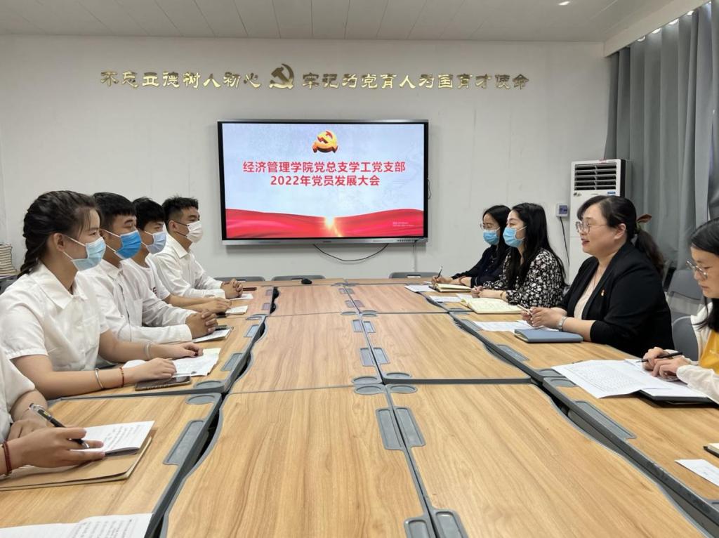 2022年5月17日下午,jinnianhui今年会党总支学工党支部在A505召开2022年党员发展大会。会议由支部书记李兆楠主持,支部全体党员同志、10名党员发展对象参加大会。