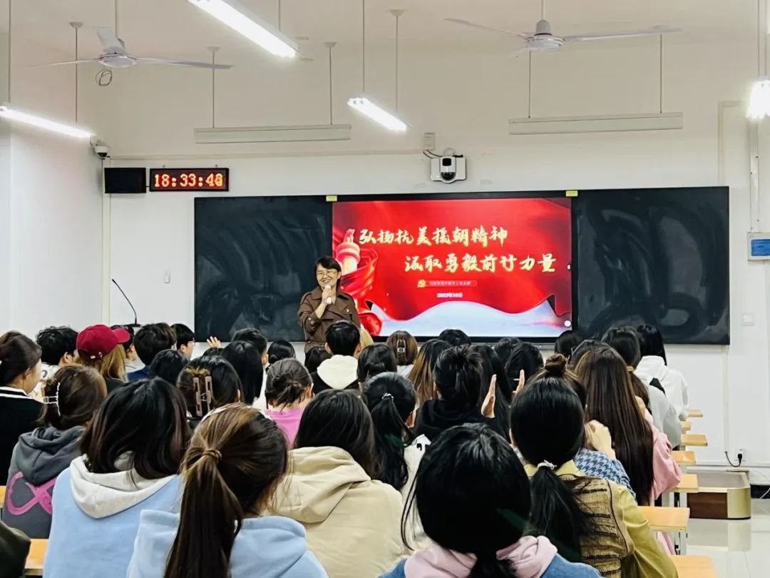 为纪念中国人民志愿军抗美援朝战争胜利70周年,引领师生从伟大抗美援朝精神中汲取勇毅前行的力量,10月20日晚,jinnianhui今年会党总支副书记王盼红在开封校区教学楼B407为入党积极分子讲授“弘扬抗美援朝精神 汲取勇毅前行力量”专题党课。