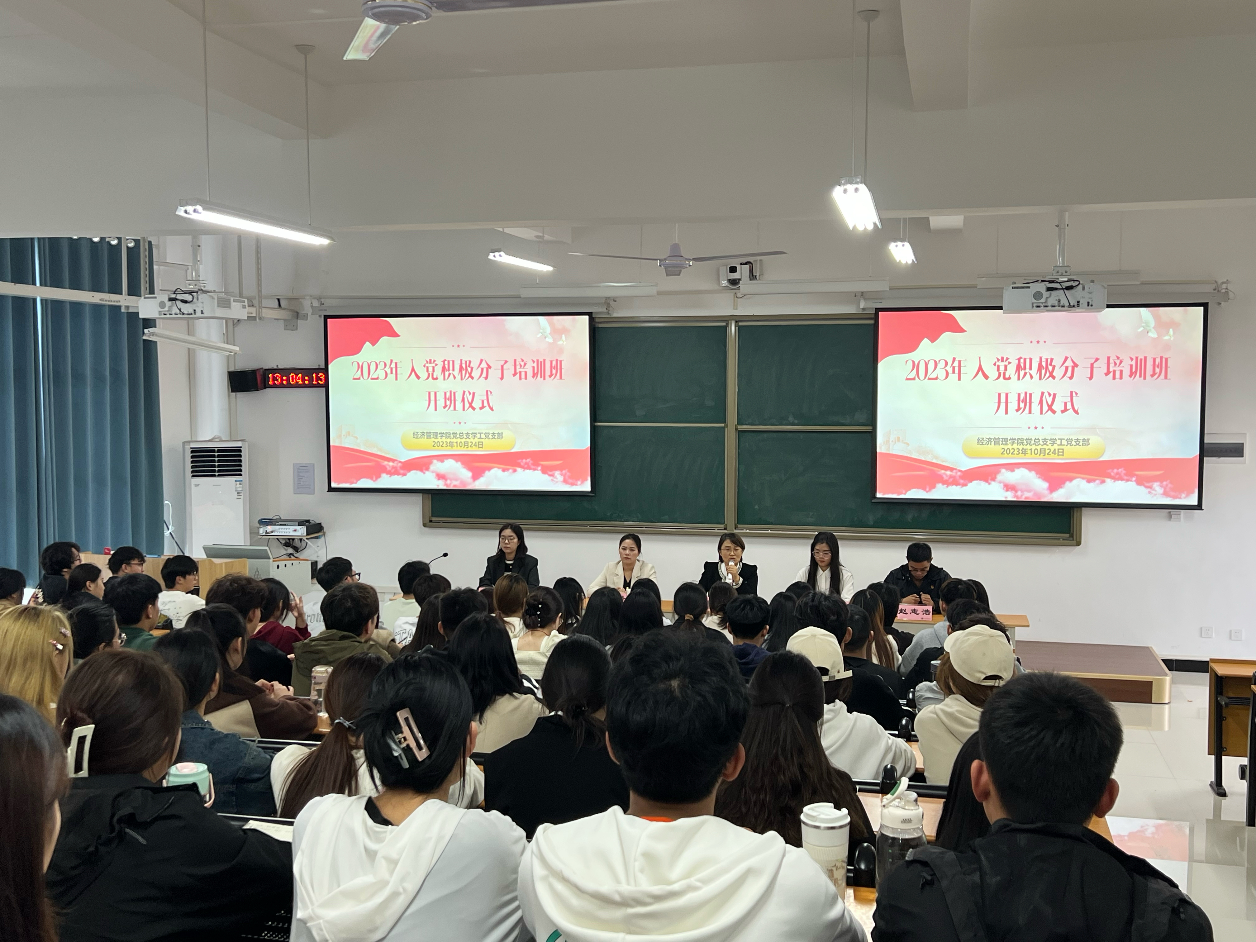 为深入学习贯彻习近平新时代中国特色社会主义思想和党的二十大精神,贯彻落实新时代党的建设总要求,做好党员发展和教育工作,10月24日中午,jinnianhui今年会党总支学工党支部在开封校区教学楼A301举办2023年入党积极分子培训班开班仪式。jinnianhui今年会党总支副书记王盼红、党员教师以及110余名入党积极分子出席开班仪式。会议由学工党支部宣传委员林素琴主持。
