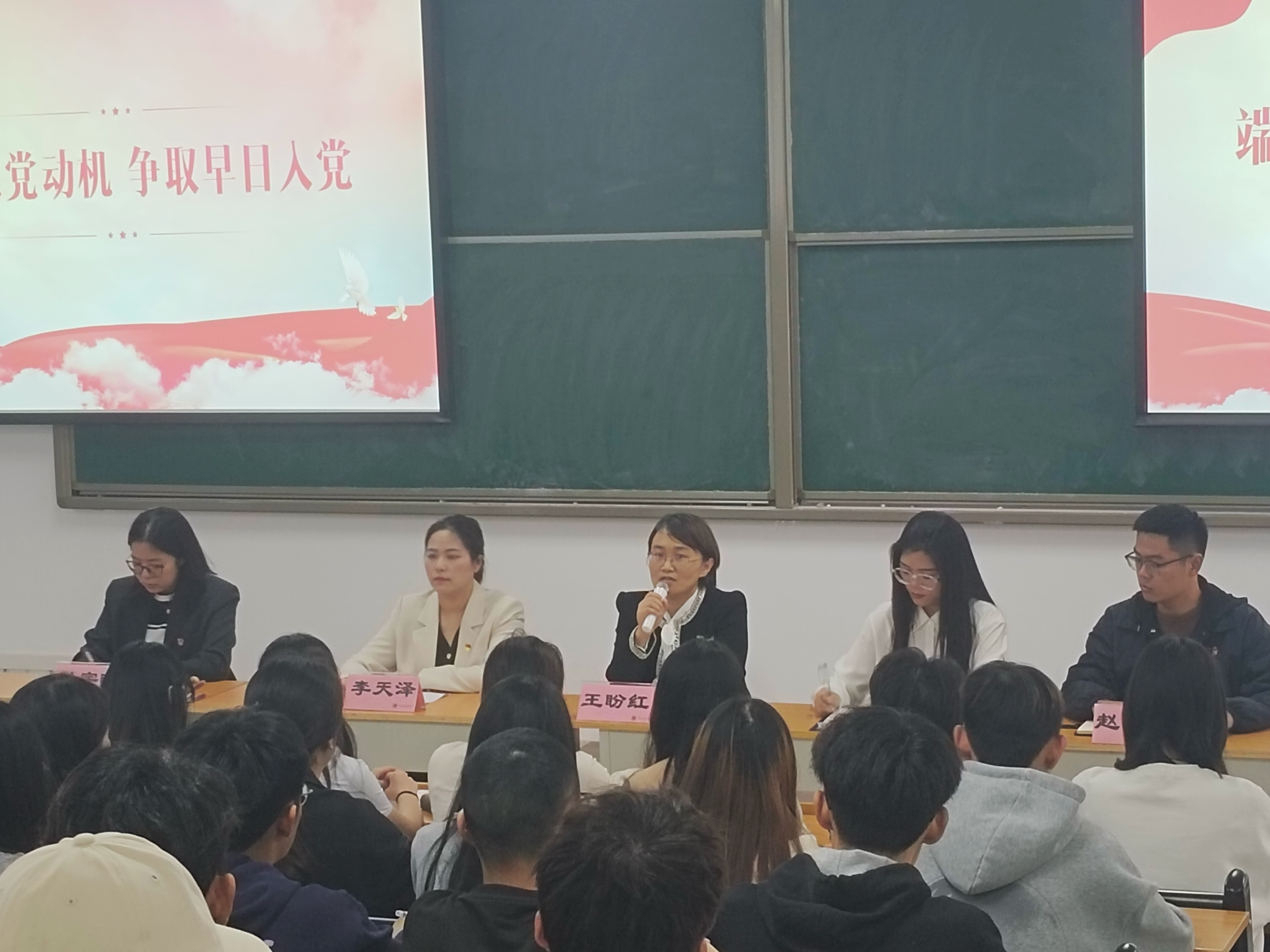 王盼红为现场入党积极分子讲授“端正入党动机 争取早日入党”开班第一课。围绕“如何端正入党动机”“如何以实际行动争取早日加入党组织”两方面内容,王书记就入党动机几个错误性倾向进行针对性讲解并对大家提出三点要求。一要提高政治站位,增强大局观念。二要加强理论学习,增强党性修养。三要立志复兴伟业,展现青年担当。