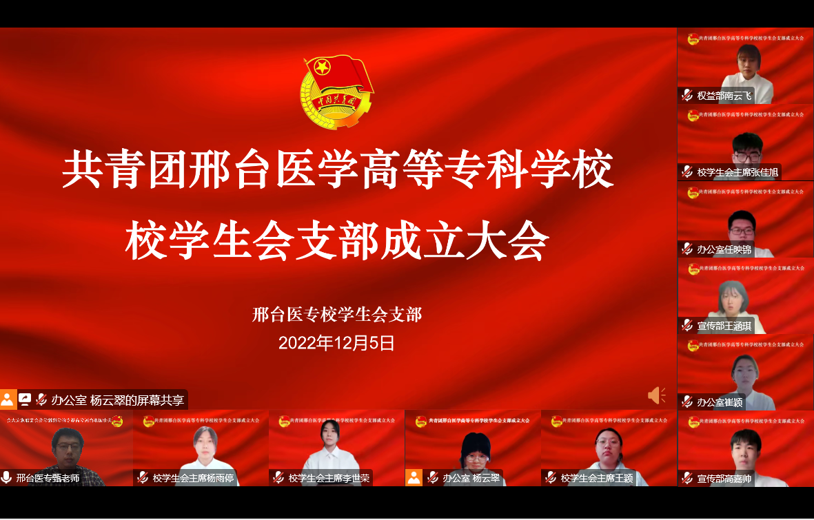 12月5日下午,beat365官网学生会团支部成立大会在线上召开,校学生会全体23名成员参加,团委副书记甄帅主持会议。 大会在昂扬的团歌声中拉开帷幕。甄帅副书记宣读了校团委《关于同意成立共青团邢台医学高等专科学校校学生会...