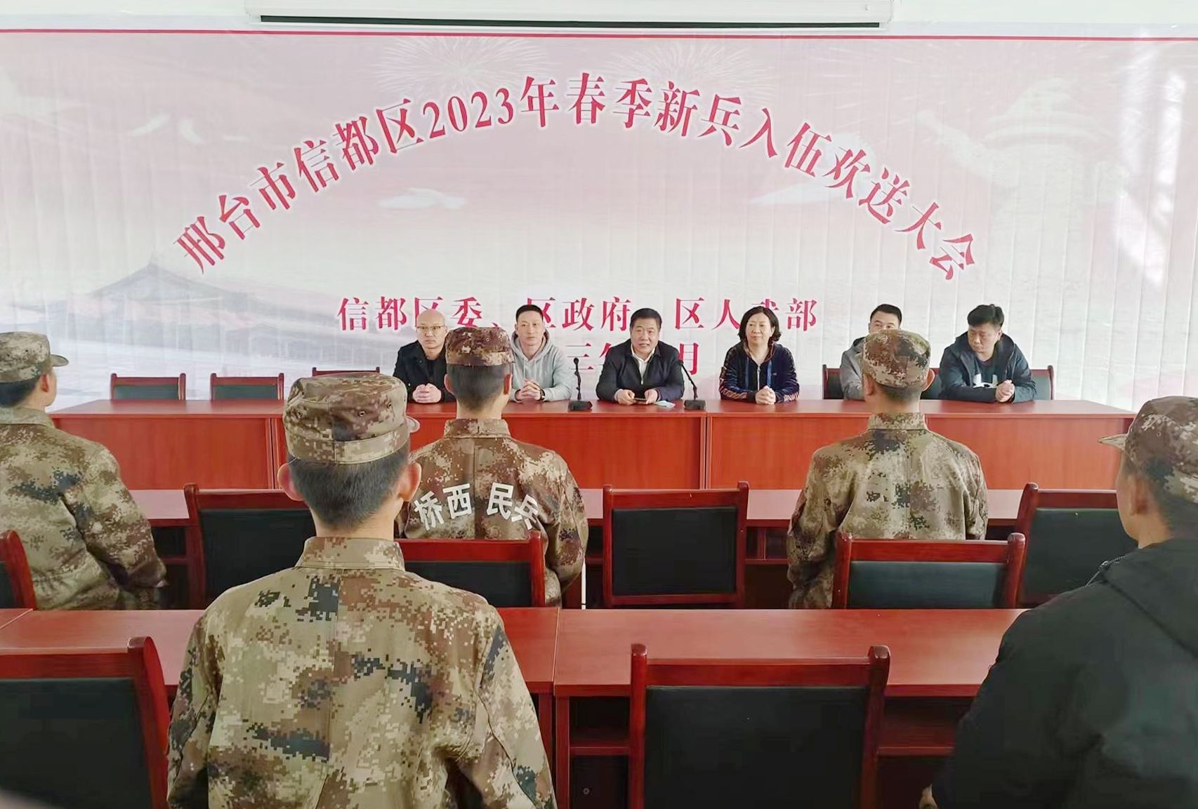 3月15日下午,学校党委委员、副校长赵国增带领学生工作处处长孙海燕等一行7人来到信都区西黄村民兵训练基地,与beat365官网参加2023年春季役前集训的15名“准新兵”进行了座谈交流,向他们送去学校的深切关怀和希望。赵国增副校长代表学校向同学们表达了慰问,勉励大家刻苦训练、勤学本领,通过新兵役前训练,提前打牢吃苦耐劳的思想根基,争取早日成为军事素质过硬的优秀军人;到部队后,要不断加强学习、磨砺意志,努力完成各项工作任务,...