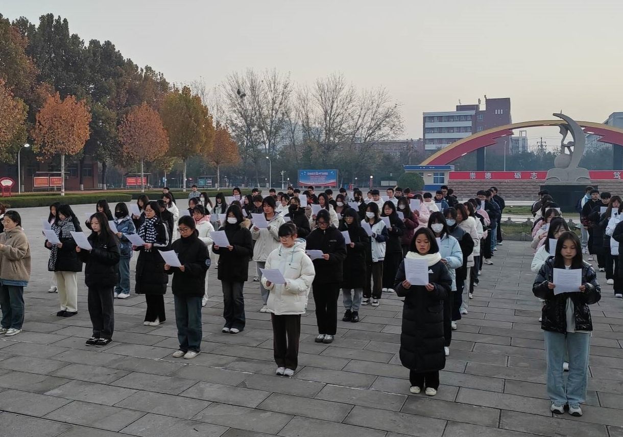 为了弘扬法治精神,增强青年学生的法律意识,11月27日上午,学校大学生社团联合会在图书馆前开展了宪法晨读活动,共计180余人参加。活动伊始,学校国旗护卫队举行了庄严的升旗仪式。随后同学们齐声朗读宪法条文,学习宪法知识,声声入耳,字字入心。诵读结束后,同学们表示,将时刻维护宪法权威,恪守宪法精神,自觉成为宪法的忠实崇尚者、自觉遵守者和坚定捍卫者。