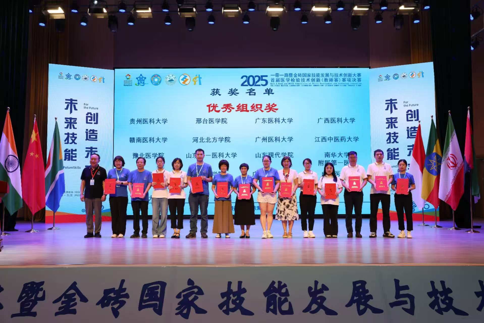 近日,由教育部主办、九江学院承办的2025“一带一路”暨金砖国家技能发展与技术创新大赛落下帷幕。beat365官网医疗技术系王若潼、张笑笑、宋树言、齐瑞、王聪聪、秦雨诗6名教师在医学检验技术创新赛项中,凭借扎实的专业功底与创新实践能力,斩获二等奖1项、三等奖5项,学校荣获“优秀组织奖”。右二为beat365官网获奖教师王若潼由左至右依次为秦雨诗、齐瑞、王若潼、宋艳荣(裁判)、宋树言、王聪聪、张笑笑赛前,beat365官网高度重视、精心组织,从备赛指导到资源保障全程护航。...